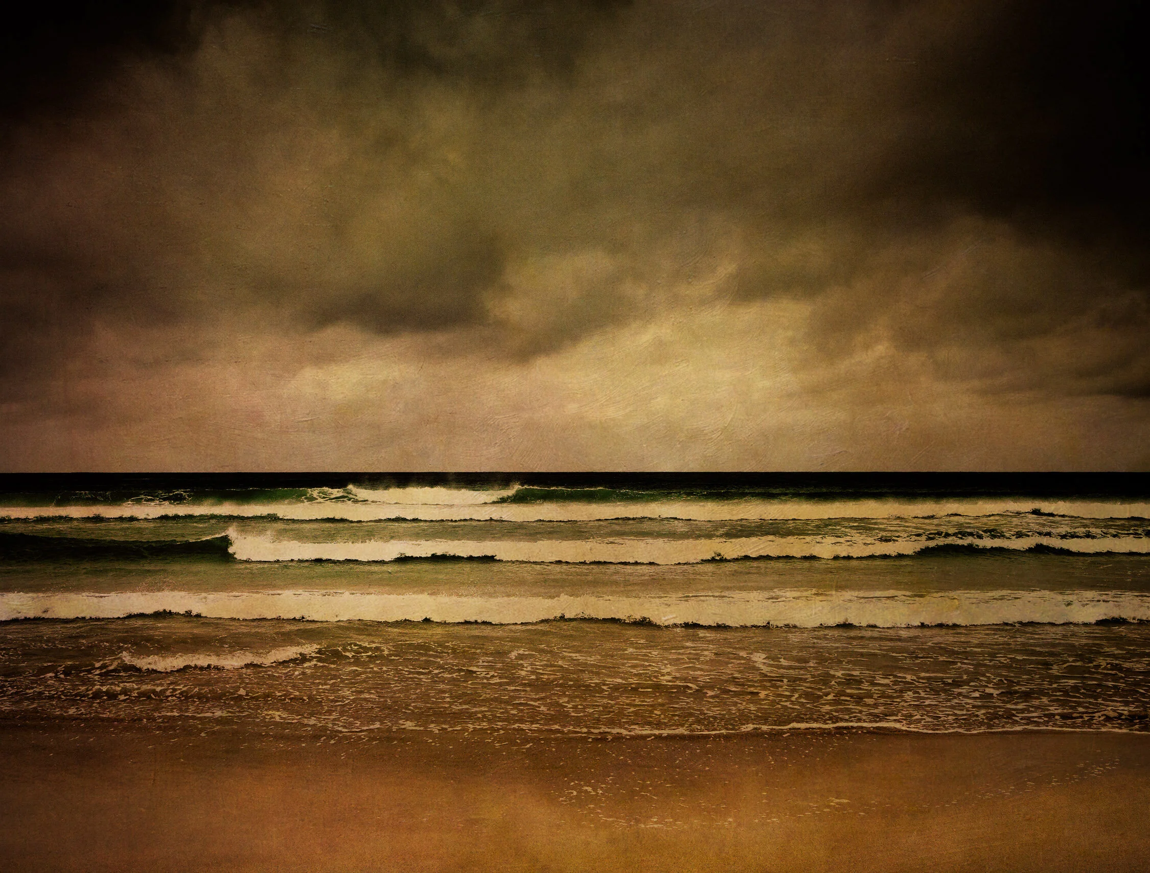 My ‘Oils’ series is a summation of all these passionate opinions; an attempt to challenge the viewer’s preconceptions, whatever they may be, about where photography sits in the wider art world. I wanted to create images that have similar visual impact to old oil paintings; images that beg a more lingering look, images that are not obviously photographs or paintings, but sit between the two. I’ve used a variety of techniques in creating them, but most of them use coloured texture layers to flavour their mood, with the objective of emphasising an influence from the world of easel painting.